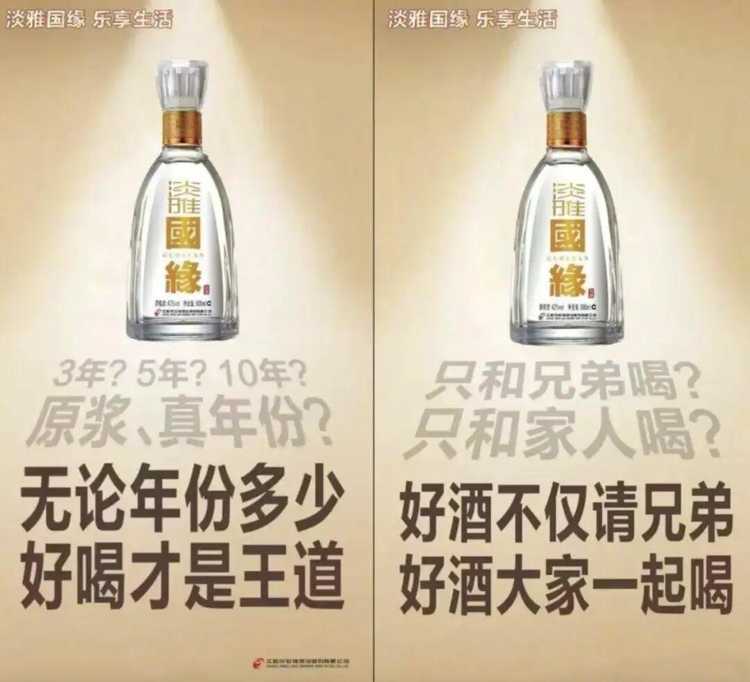 因此,在洋河大曲高线光瓶酒推出后,今世缘旗下淡雅国缘曾发布两张争议海报,“3年?5年?10年?原浆、真年份?无论年份多少,好喝才是王道”……